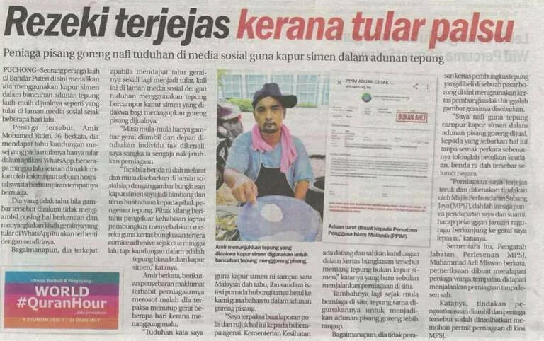 The vendor’s struggle with viral story was also highlighted in a news article titled “Rezeki terjejas kerana tular palsu” (Translation: Livelihood affected due to false accusation), that was published in Sinar Harian yesterday (Tuesday, 15th August 2017).