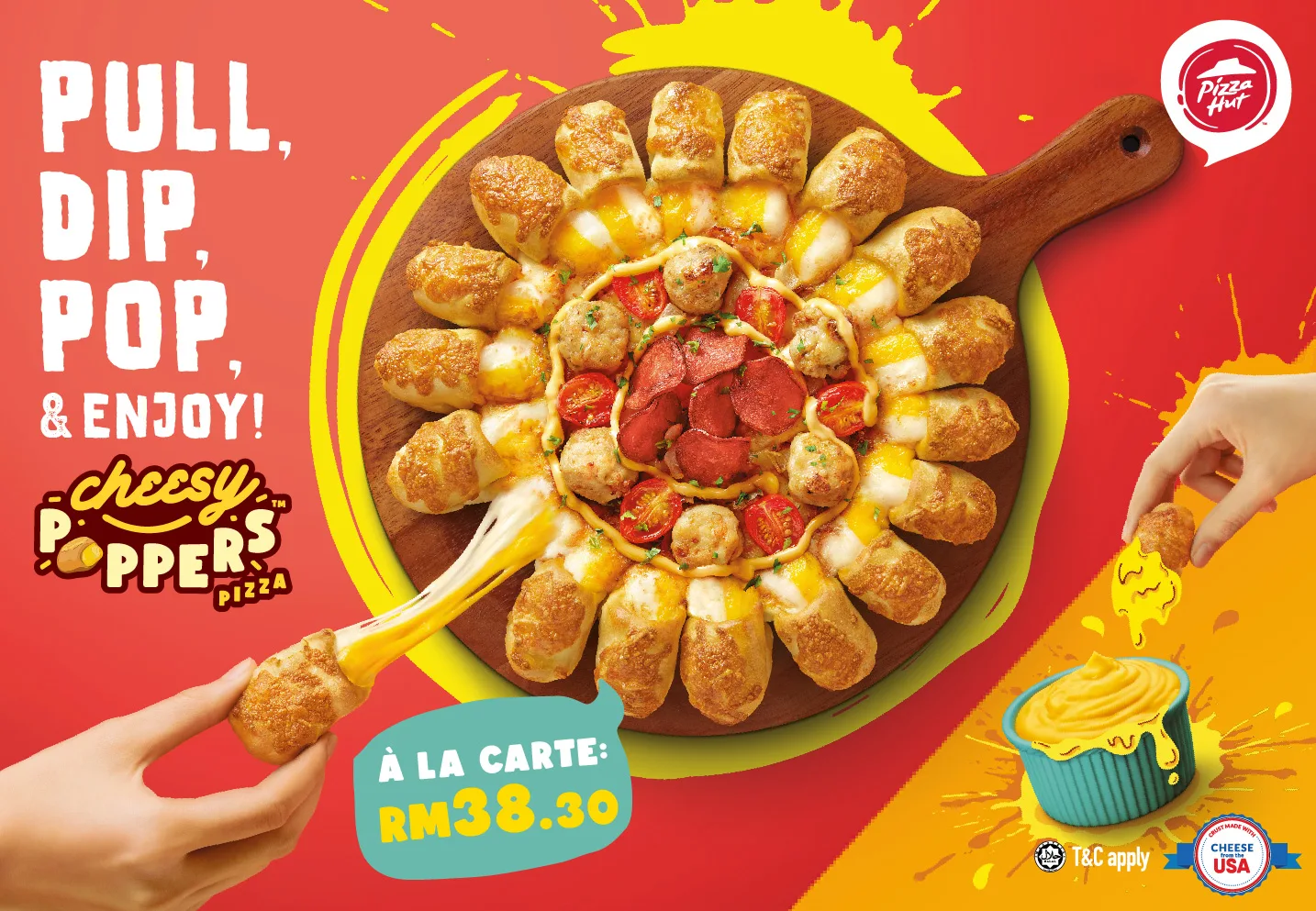 While this may put a damper on all our year-end plans, Pizza Hut is making sure that we still keep the fun going with exciting pizza parties! Malaysians can now rejoice with Pizza Hut’s limited edition Cheesy Poppers Pizza, which is going to make us Pull, Dip, Pop and Enjoy right into the New Year!