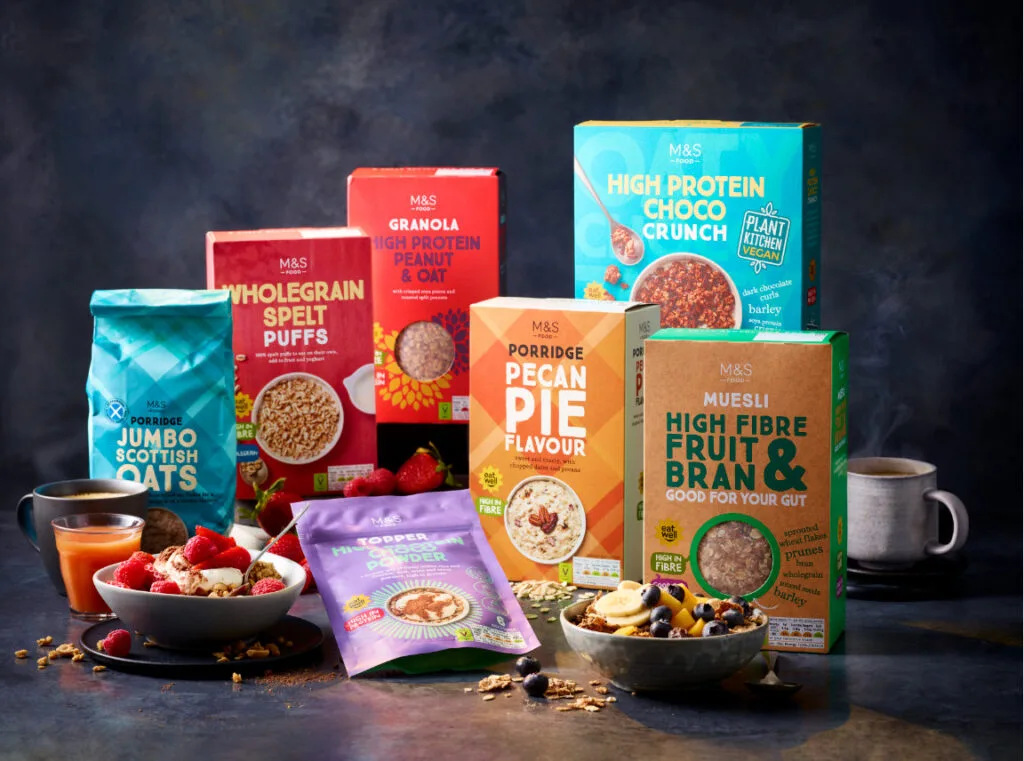 - M&S Very Berry Fruity Muesli – A delicious blend of wholegrain oats, dried berries, nuts, and seeds, this muesli offers a balance of flavour and texture. Whether eaten leisurely for breakfast or a quick bite between meals, M&S Very Berry Fruity Muesli caters to all your cravings. High in fibre and bursting with berry goodness, it’s an ideal breakfast or snack option for health-conscious foodies.