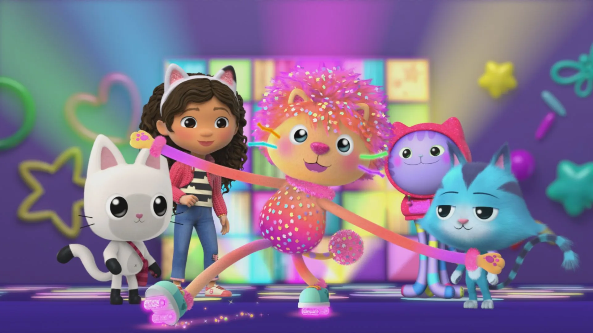 Gabby and Pandy are thrilled to shrink down and greet their newest feline companion, Marty the Party Cat! Marty and his amazing new Dollhouse home, the Party Room, are full of surprises, and with a wave of his magical “party tail,” the Party Room can transform into any celebration you can think of! A visit from wise Grandma CatRat, a magical wishing well, and Gabby’s birthday party set the stage for sprinkle-riffic adventures and whoopsies in Gabby’s Dollhouse, where there is always a reason to celebrate!