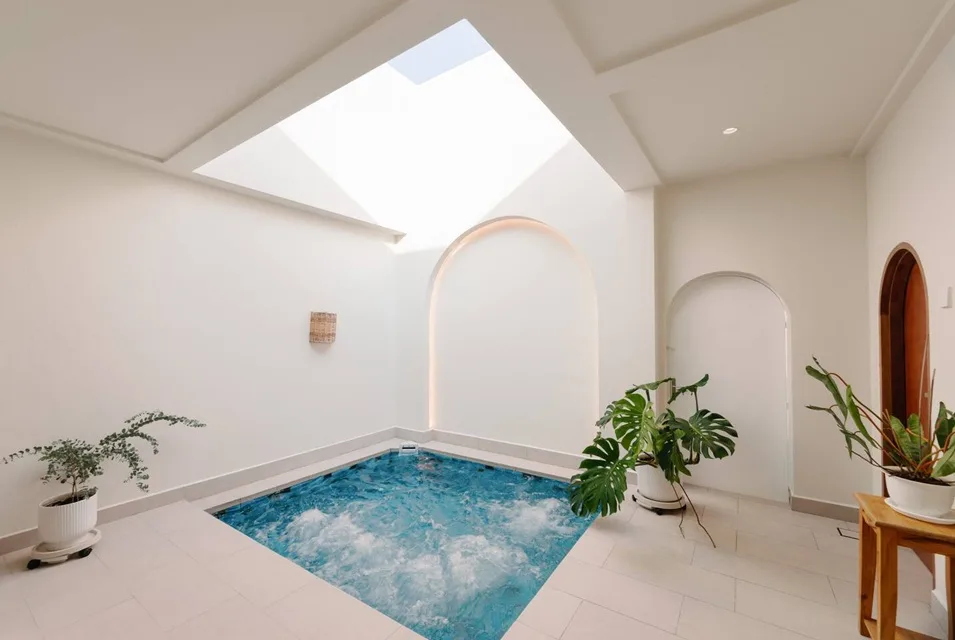 Dip in the private pool under the skylight, catch sunsets on the rooftop, then wander out for café hopping and street food nearby.