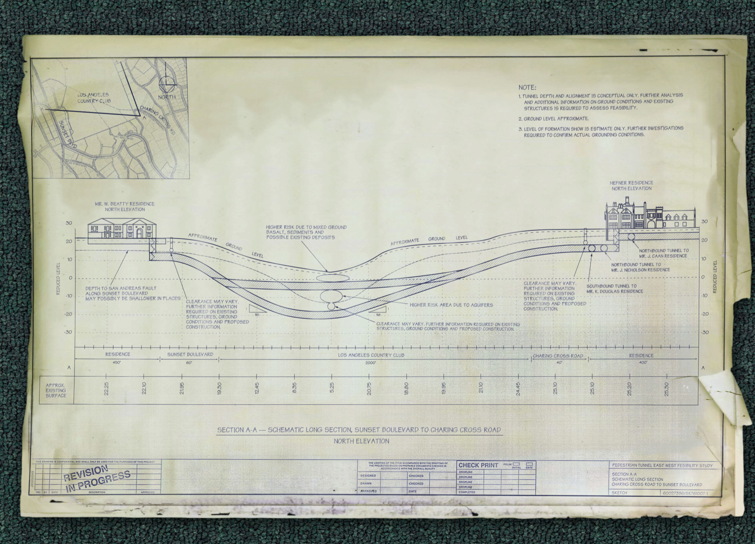Another blueprint showed that the tunnels were connected to the homes of “Mr. J. Nicholson”, “Mr. W. Beatty”, “Mr. K. Douglas”, and “Mr. J. Caan.”