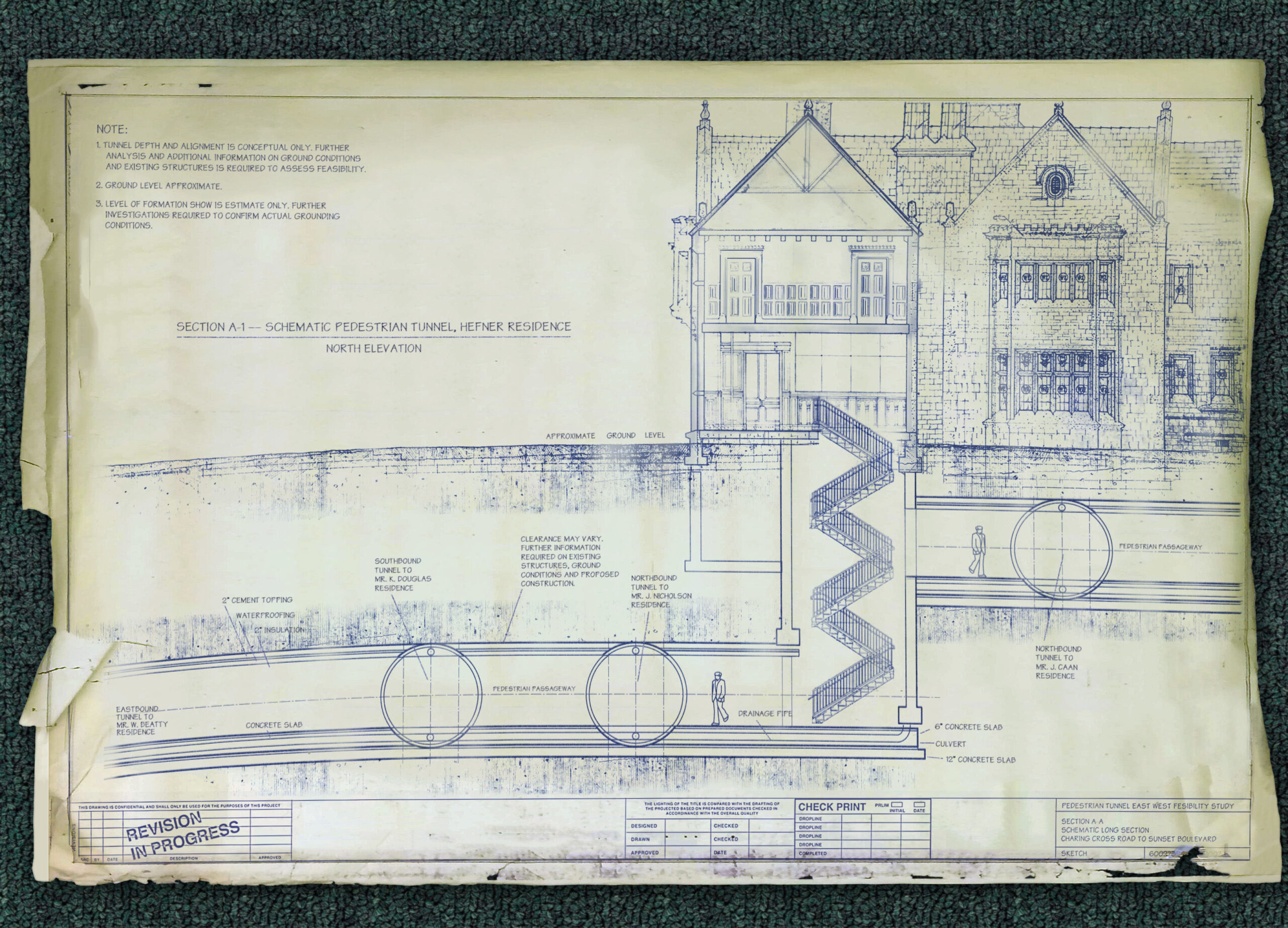 One of the blueprints showed that there were advanced plans to build secret tunnels to a number of celebrity home near the Playboy Mansion in the Los Angeles residence.