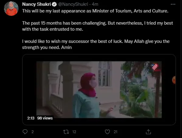 The MP of Batang Sadong, Nancy Shukri has also used Twitter to deliver her farewell. She also wishes her successor the best of luck.
