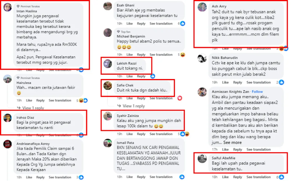 Meanwhile, the security guard received tons of praise from netizens for his honesty. Many also said he should receive a medal for his service. However, some also joked that they wouldn’t surrender the suitcase if they were in his position. Some netizens also began speculating where the money came from and what it was potentially for. A company in Shah Alam did claim the suitcase and alleged money was theirs, but police are still investigating the report.