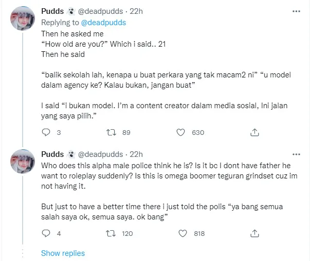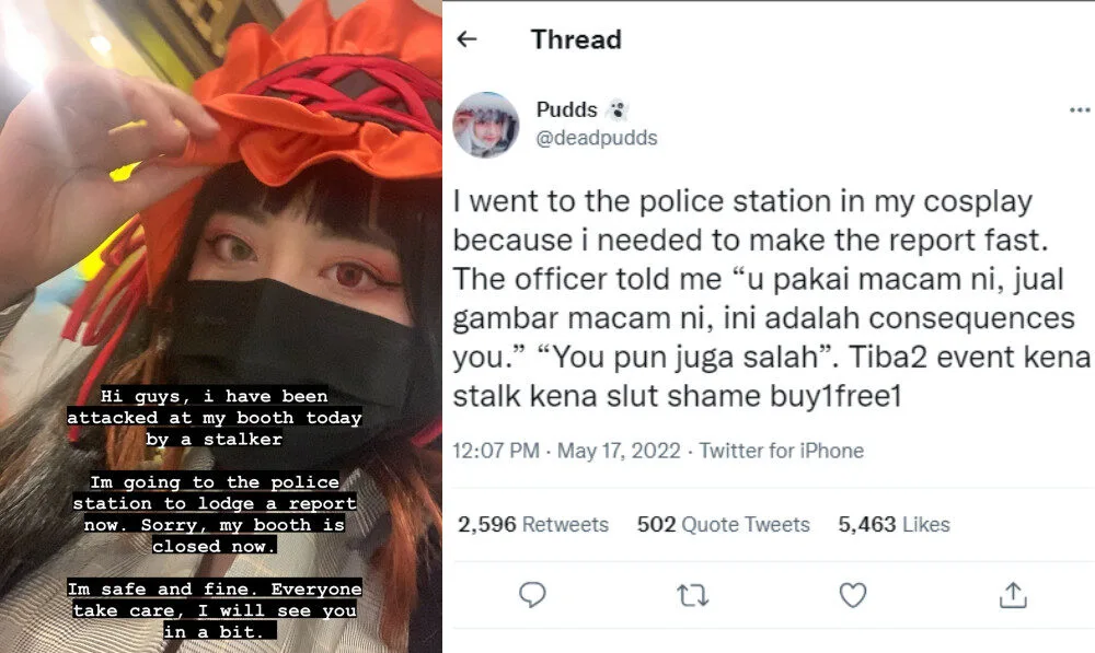 After authorities stepped in to help deal with the situation, Pudds decided to make an official report at the police station. She stated that she had gone to the station in her cosplay as she had intended to make the report quickly. However, she was taken aback when the police did not treat her case seriously. “The officer told me, “You wear (clothes) like this, sell photos like this, this is your consequence. You are also in the wrong.” A stalking (incident) suddenly became a slut shaming (issue),” Pudds commented wryly. “Buy one free one.”