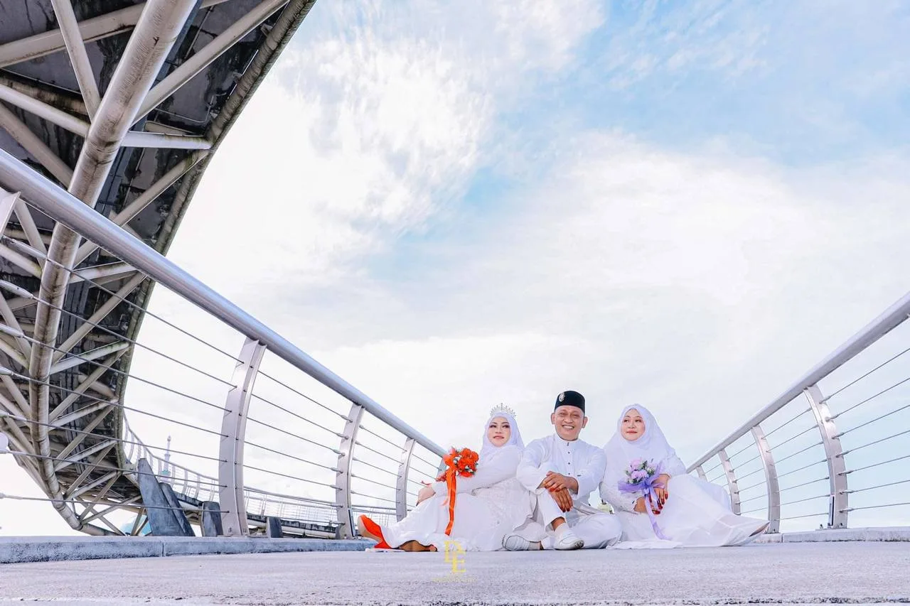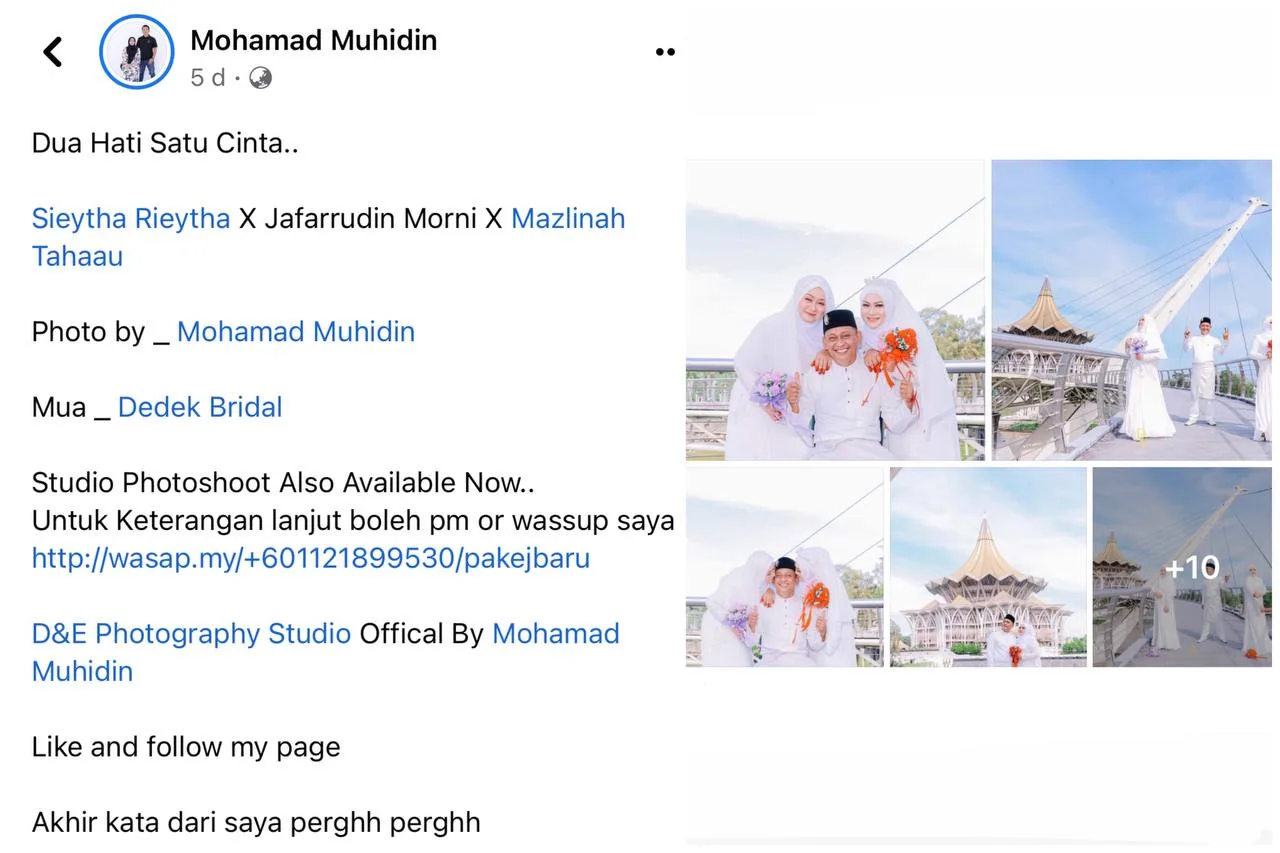 The Sarawakian photographer, Mohamad Muhidin, had posted his works (like all photographers do), on Facebook. It has gained attention from netizens because of it’s peculiarity. He captioned the throuple’s wedding photos with “Two hearts, one love. I would like to just say, perghh perghh.”