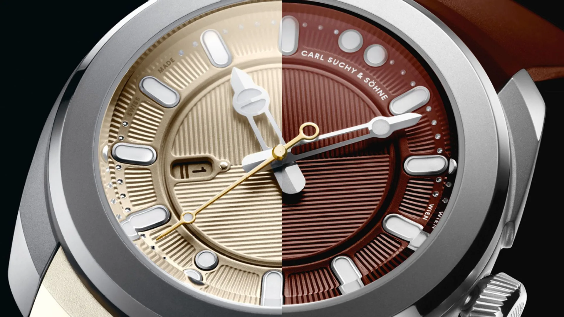 The Champagne variant dazzles with its rich golden hues, while the Bordeaux captivates with its deep, luxurious red. Both watches feature a luminous golden second hand and Super-LumiNova-filled indices, highlighting the meticulous craftsmanship and attention to detail that define Carl Suchy & Söhne.