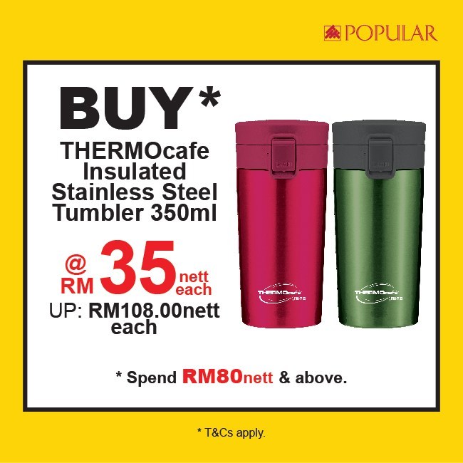 Known for books but also great at their gadgets, the madness don’t stop as Popular also has their minimum purchase deals. Just spend a minimum of RM50 and you can get yourself a cool 10,000mAh power bank for just RM74.90 or a 32GB PenDrive for just RM19.90. In addition, just spend a minimum of RM80 and you can get yourself a stainless steel Tumbler worth RM108 for just RM35.
