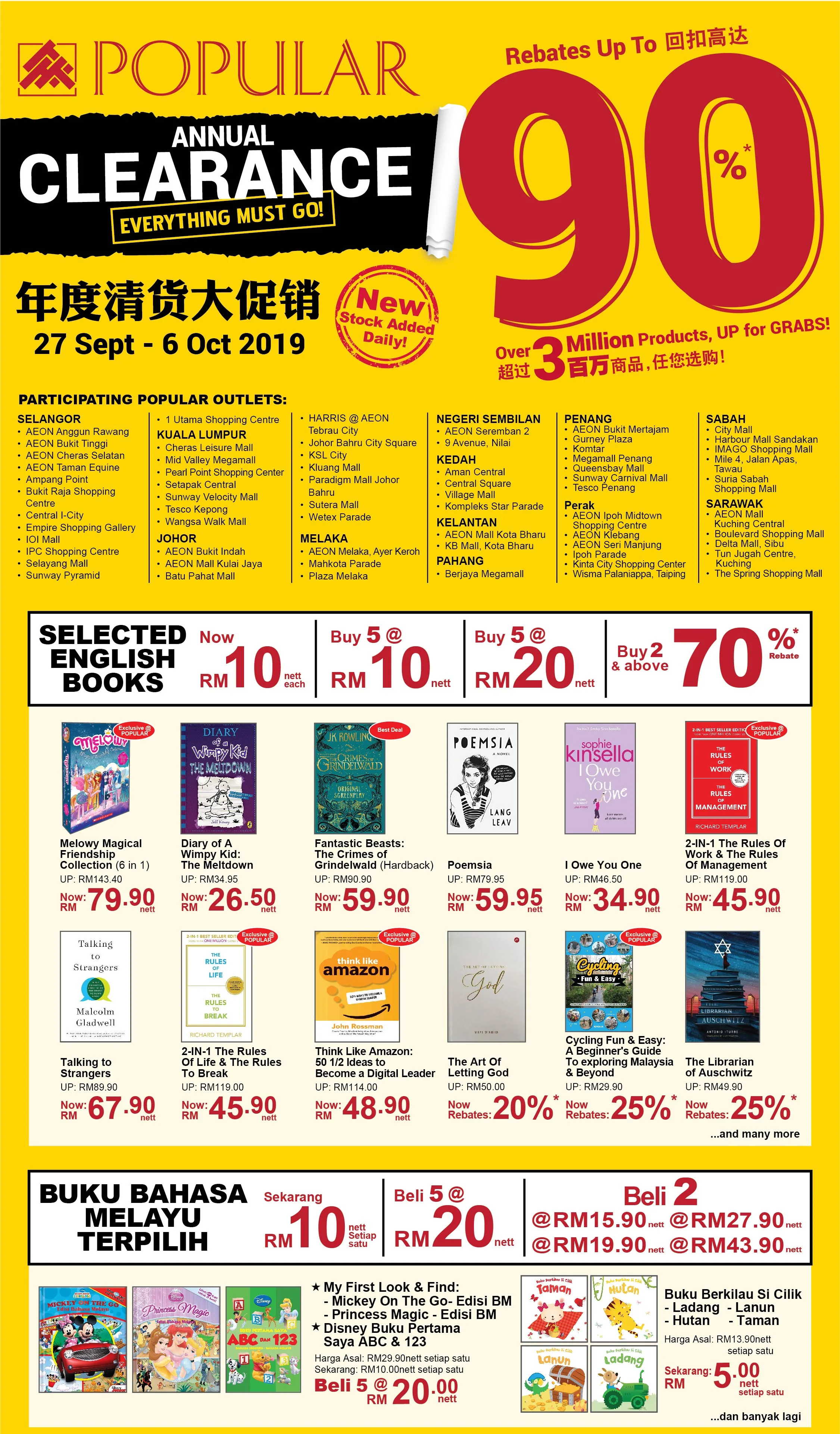 Ever had the feeling that one is not enough? Now with the clearance sale you can purchase multiple English, Chinese or Malay books for the price of what you typically see for just one.