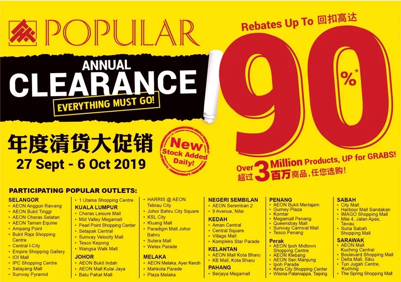 Being one of the largest bookstore chains in Malaysia, it quickly established itself as a go-to place for many students, parents and readers alike to find their favourite books and stationaries. The clearance will be available for 10 days straight, starting from 27th September till 6th October 2019.