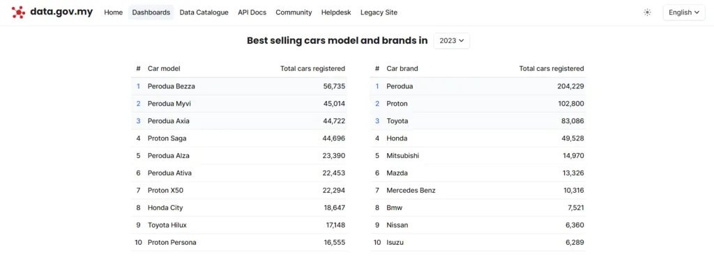 According to a new database website launched by the Malaysian Administrative Modernization and Management Planning Unit (MAMPU), as of 1st September 2023, Perodua has sold over 204, 229 vehicles. This has placed it firmly in the number one spot for the best-selling car brand in Malaysia, with Proton a step behind with 102,800 units. Third place was taken by Toyota with 83,086 registered cars.