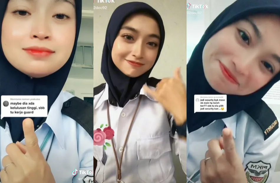TikTok user Siti Nurul Atiqah Nawawi, who goes by the username @02dec92 posted a series of videos on her profile responding to comments by netizens who belittled her for having a job as a security guard. In the first video, she responded to a comment that said she has no qualifications to apply for a ‘better job’. “Those with PHDs aren’t even guaranteed to secure a job. Show yourself if you’re man enough”, she captioned.