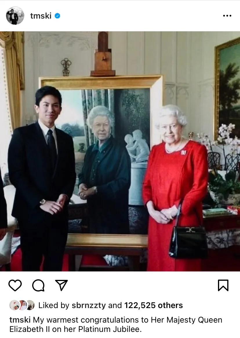 The Asian royal heartthrob shared a throwback shot of himself and the current ruling monarch. “My warmest congratulations to Her Majesty Queen Elizabeth II on her Platinum Jubilee,” the 30-year-old captioned the snap. The photo has since received 122k likes on IG, and has received tons of reactions from netizens online.