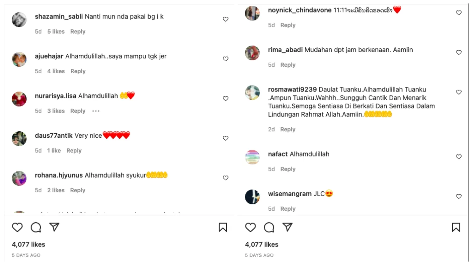 Some users expressed that they can only wish to own a watch as luxurious as the one worn by Prince Mateen. One user commented, “Alhamdulillah…I can only afford to just look” while another wished they can get their hands on the same watch, “Hopefully one day I can own that watch. Aamiiin”.