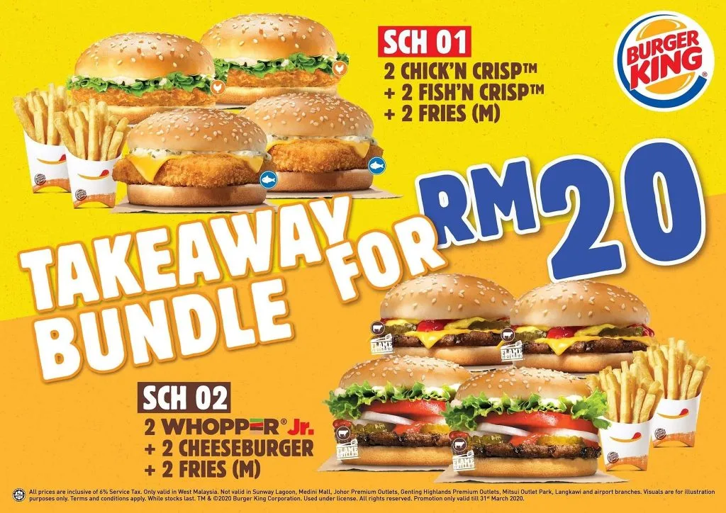 - Takeaway Bundle for RM20 (takeaway or drive-thru).