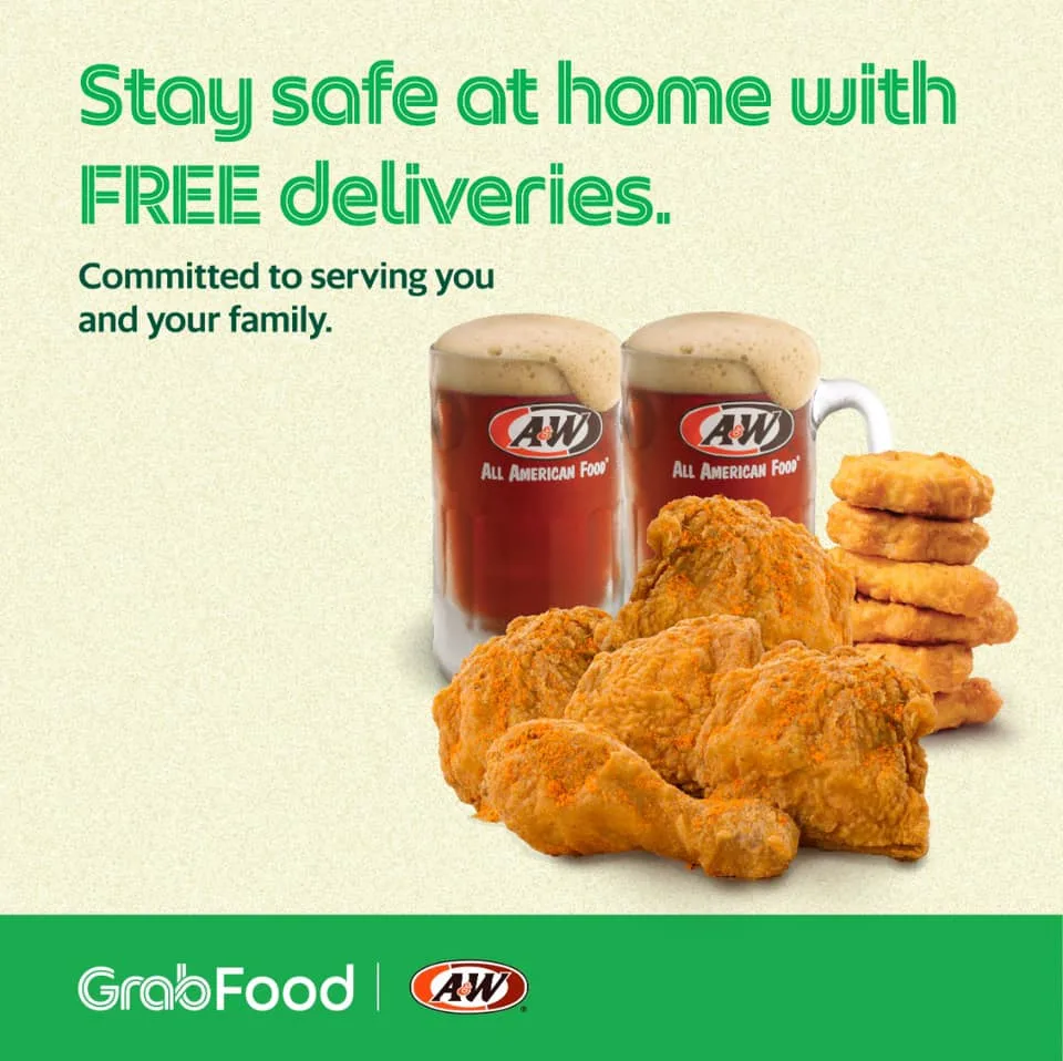 A&W would be able offer free deliveries for order made via GrabFood. They are also offering#StayAtHome Bundle Meals which allow you to choose from five different combo sets. These sets include their burgers, coney and chicken. Click here for more information.