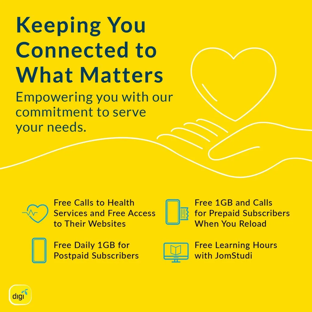 During these trying times, Digi users will be able redeem 1GB worth of free data from now until 31st March 2020. Check out the Rewards section in your MyDigi app for further information.