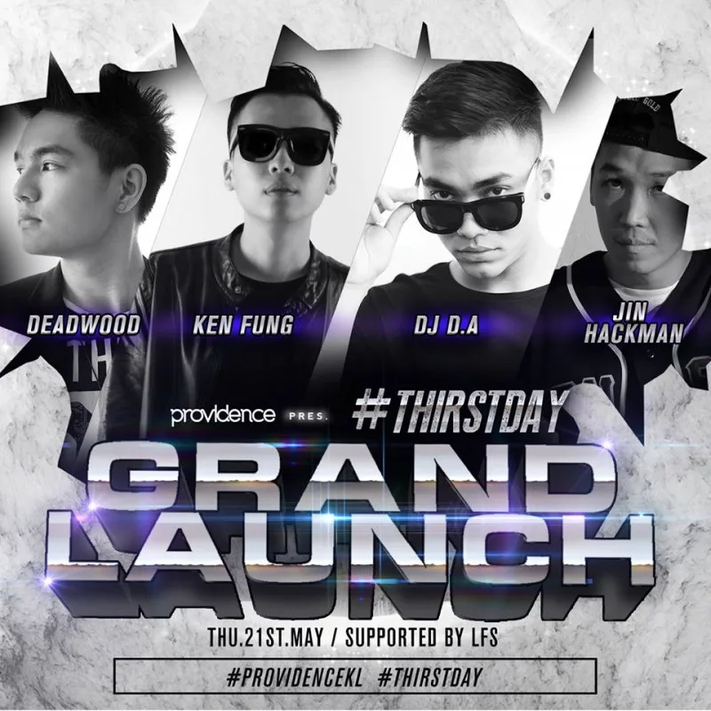 After weeks of crazy fun, excitement and teasing, Providence KL will finally be throwing a grand launch party for their latest weekly series, #Thirstday. Featuring Providence’s very own #Thirstday heroes on the decks, Ken F., Deadwood, DJ D.A and special guest MC Jin Hackman, Providence is inviting partygoers to strap on their dancing shoes and party the night away.