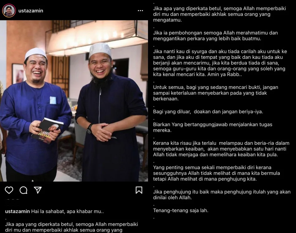 At the same time, Ustaz Amin reminded those who have been actively looking for evidence to not exaggerate irrelevant matters. According to him, “If we step out of line and rejoice in spreading someone else’s ‘aib’ (disgrace), God would never take care of our own ‘aib” in the future.”