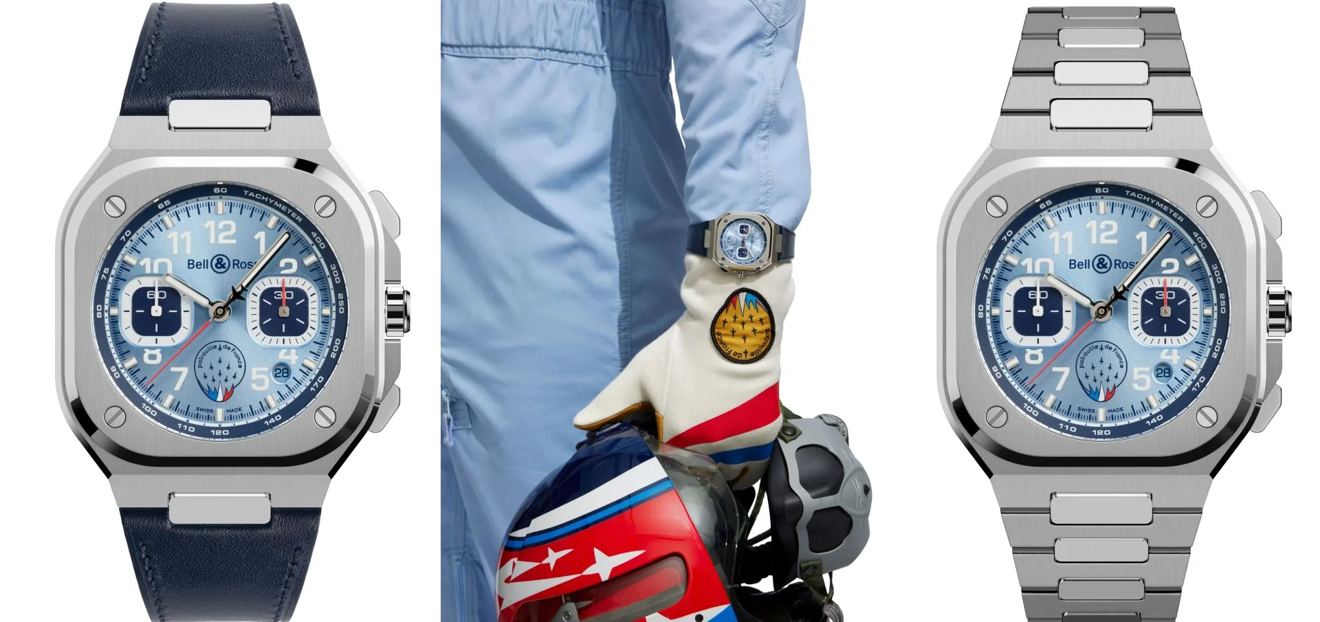 Elevate your wrist game with Bell & Ross’s BR-05 Chrono Patrouille de France, a limited-edition timepiece that blends aviation heritage with urban sophistication. Inspired by the elite aerobatic team of the French Air and Space Force, this sleek 42mm chronograph captures the precision and artistry of flight with its striking sunny blue dial, Super-LumiNova® details, and the squadron’s insignia. Designed for both performance and prestige, it’s a true collector’s piece – whether you’re soaring through the skies or making a statement on the ground.