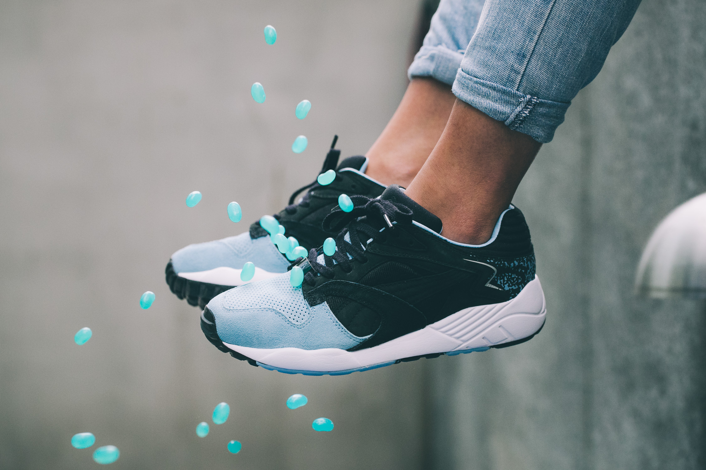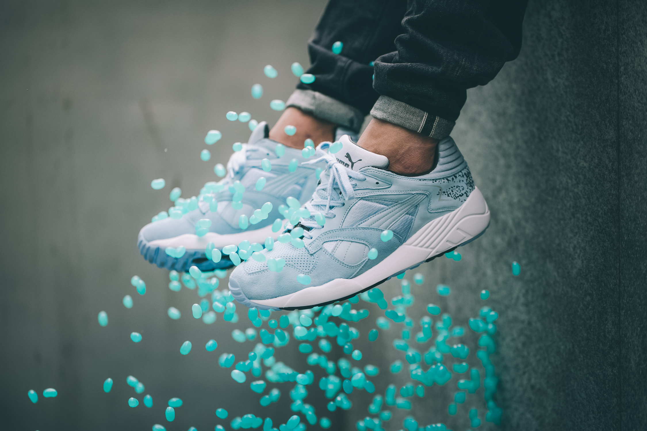 Hikmet brought the Puma Trinomic XS850 Adventurer Pack to Berlin when he was in the States. From there, he picked up an addiction to Jelly Belly, a true American jellybean treat when he was in the US. The Berry Blue-flavoured jellybean, which is his favourite flavour, was the inspiration to the colourways of these rare sneakers.