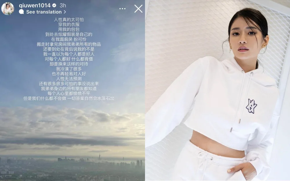 However, Qiu Wen had moved on and was cultivating meaningful relationships. Unfortunately, her faith in humanity has been struck at its core yet again. This time she claims she’s been betrayed by her brother’s friend and her story sounds nasty!