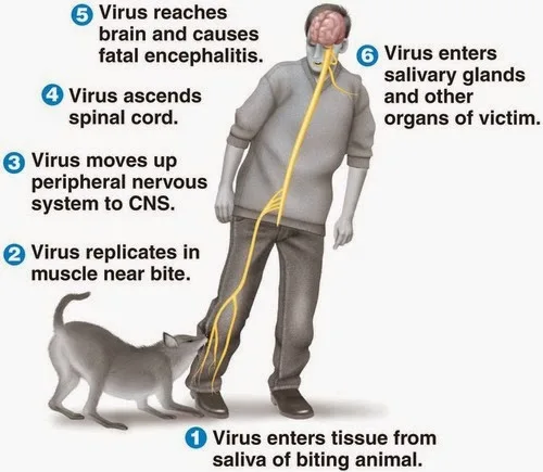 Rabies’ symptoms include fever, headache, excess salivation, muscle spasms, paralysis, and mental confusion, and can lead to coma and brain death. The virus is believed to have spread from a neighbouring country, possibly Thailand.