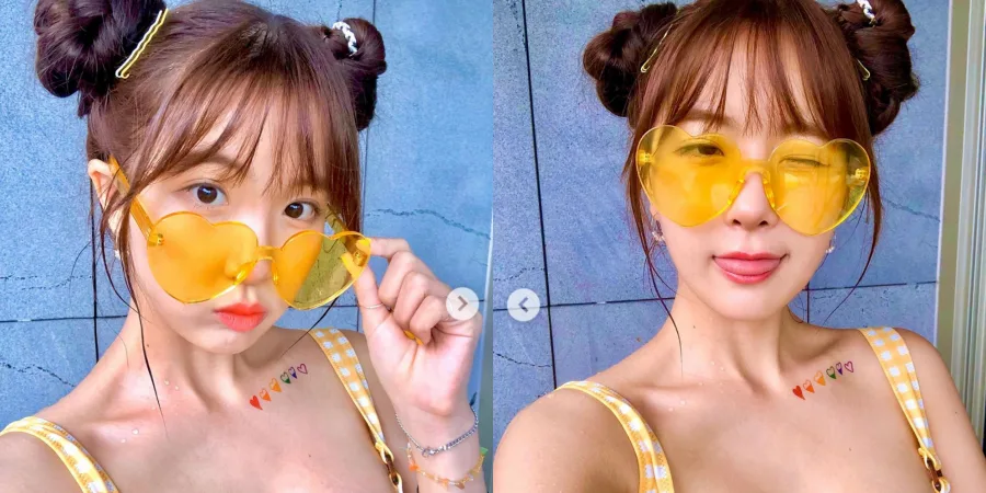 Yesterday (21st November), the 28-year-old posted a selfie photo of herself on Instagram. In the picture, Hyunyoung was seen wearing a cute yellow top that showed off her cleavage with a pair of sunglasses to complete the look.