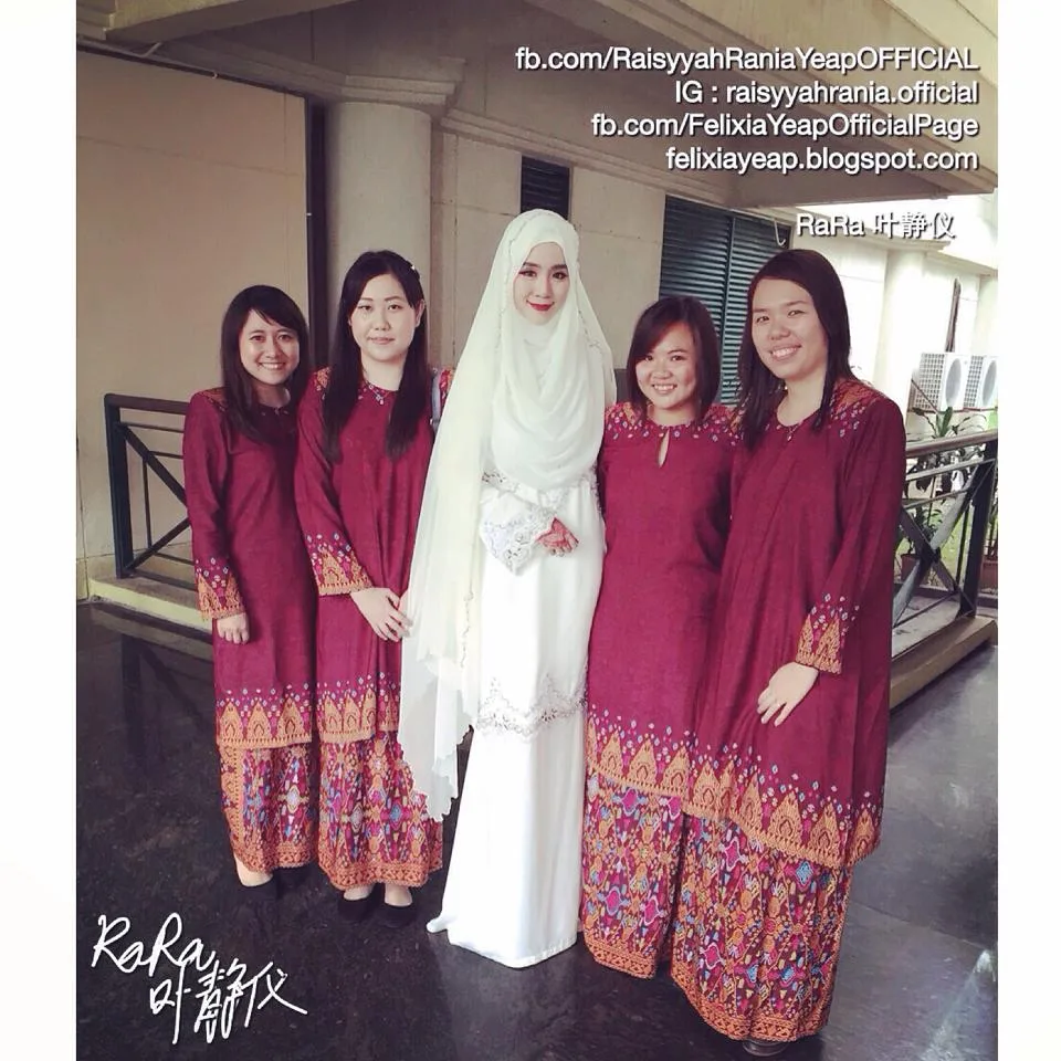 Raisyyah also officially announced that she was married via her official Facebook page, complete with a set of pictures from the happy ocassion. The blushing bride revealed that she did her own makeup and that her friends of more than a decade were in attendance as her bridesmaids.
