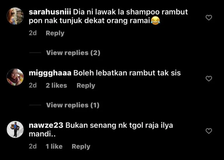 Recently, Ilya (full name Raja Ramilah Begum Raja Mohammad) posted a video of herself enjoying a shower session online. The video was uploaded on her Instagram account to promote a shampoo product she’s currently endorsing.