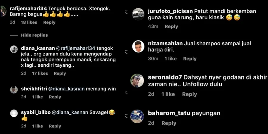 One internet user knowns as @nawze23 pointed out that “it’s not easy to watch” the actress taking a shower. Another user, @rafijemahari34 also commented that even though watching the video is considered a “sin”, he can’t help but watch the clip up until the end. Check out some of the other comments here: