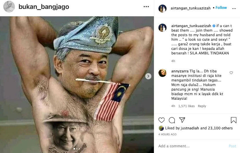 Raja Permaisuri Agong, Tunku Hajah Azizah Aminah Maimunah Iskandariah recently called out the individual behind the Instagram page @bukan_bangjago for uploading several edited photos of her husband, YDPA Al-Sultan Abdullah of Pahang.
