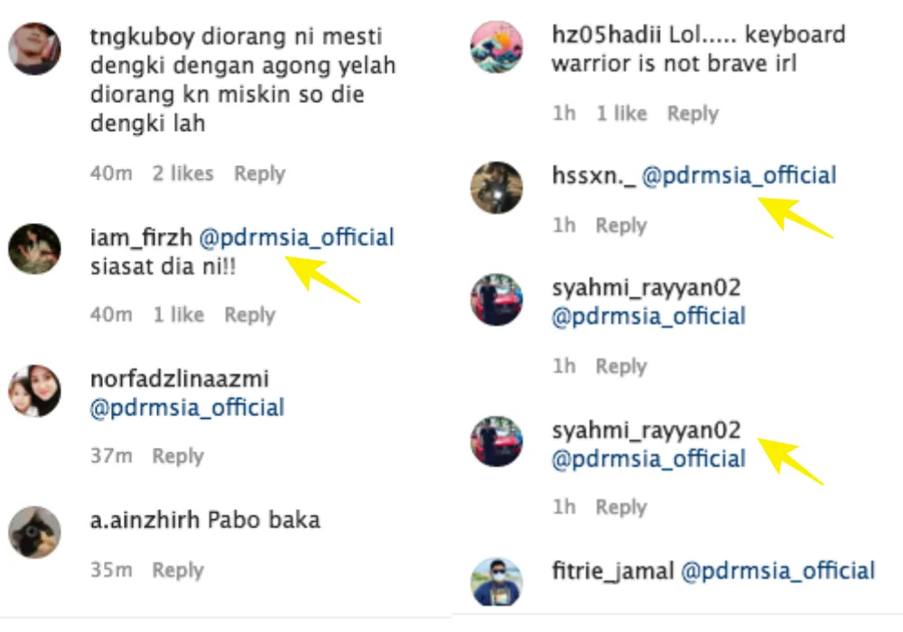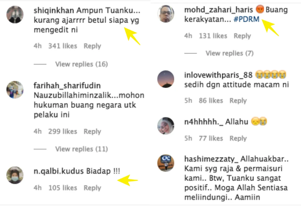 Scrolling through the comments, a majority of netizens came forth to slam the Instagram user over his lack of respect towards His Highness. Not only that, some even flooded the section by tagging the Polis DiRaja Malaysia (PDRM)’s official Instagram page and urging them to take the necessary steps in handling this case.