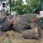 After which, Raju was sedated and loaded onto the back of a truck. Once he was loaded and given additional sedation, a convoy then escorted the five and a half tonne elephant, 350 miles on the back of an open topped lorry to the charity’s Elephant Conservation and Care Centre at Mathura. Once at the centre, Raju was given a bath and emergency medical attention.