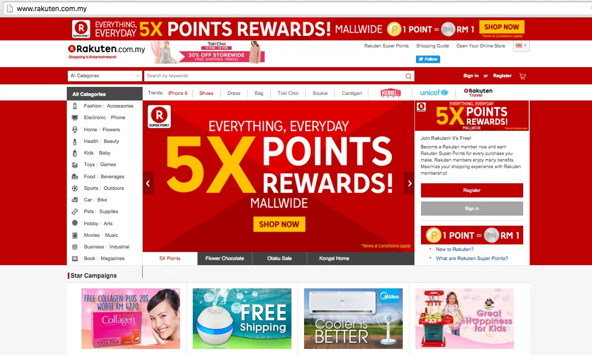 Rakuten first started its expansion into the region when the company launched operations in Taiwan in 2008. In 2012, Rakuten announced their plans to launch an Internet shopping mall in Malaysia, Rakuten Online Shoping.