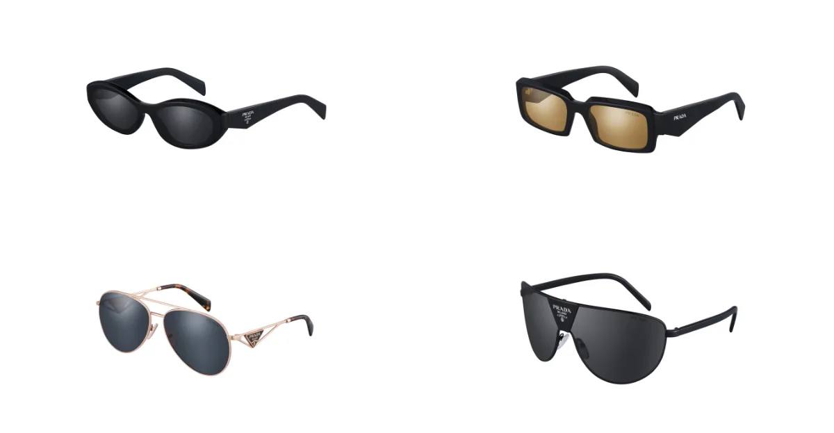 The men’s collection unveils sunglasses that reimagine the classic teardrop shape with a contemporary twist. A symphony of metals defines the wraparound cylindrical lenses, while the iconic Prada logo takes center stage, bathed in contrasting colors. From Black to Silver and Gold, these frames redefine sophistication with a modern twist.