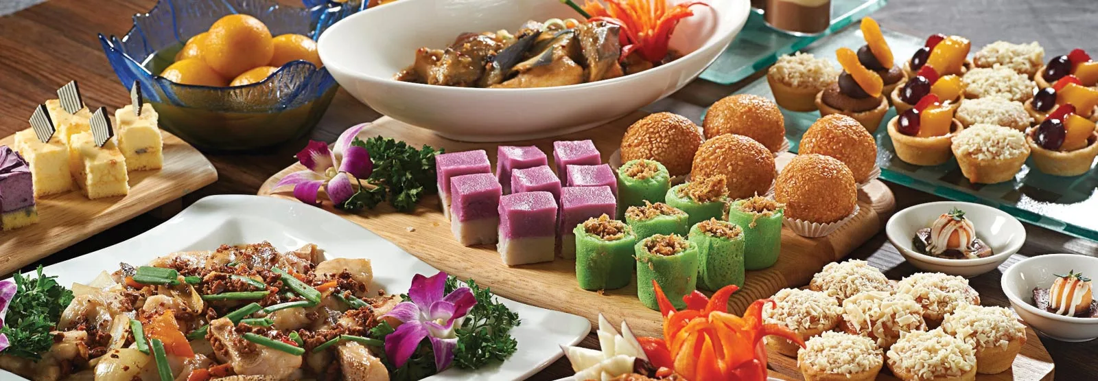 Among the options available are the Ulam-Ulam Kampung with an array of Sambals, Bubur Lambuk Daging, Kambing Kerutup, Telur Itik Masak Lemak, Kepah Masak Lada Hitam, Fish Head Curry, Roast Lamb with Nasi Briyani, Fried Mussel With Chilli, Fried Mussel With Chilli, a wide variety of Malay Kuih, and Western-style cakes and desserts as well as local fresh fruits.