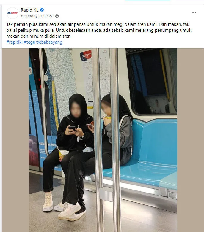 Recently, the girls found themselves getting called out by RapidKL after they were caught eating Maggi cups on the MRT. Taking to their official socials, RapidKL took action by reprimanding the duo for their action. In the photo, the two ladies were seen holding a cup of instant noodles while scrolling on their phones.