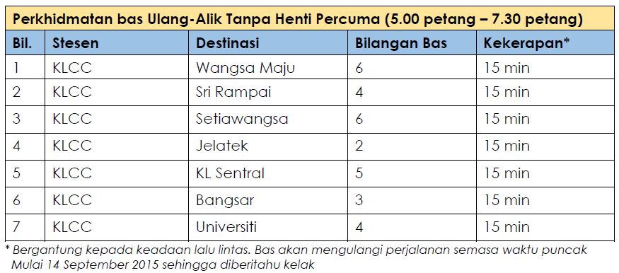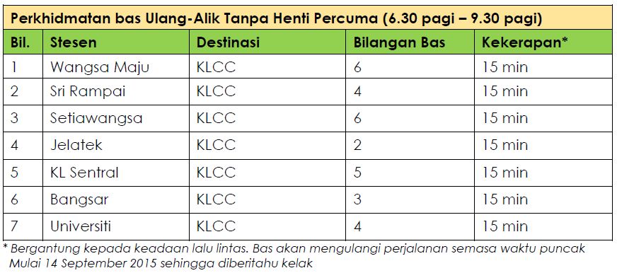They will also have free buses running from KLCC to the 7 stations from 5pm to 7:30pm during the repair work.