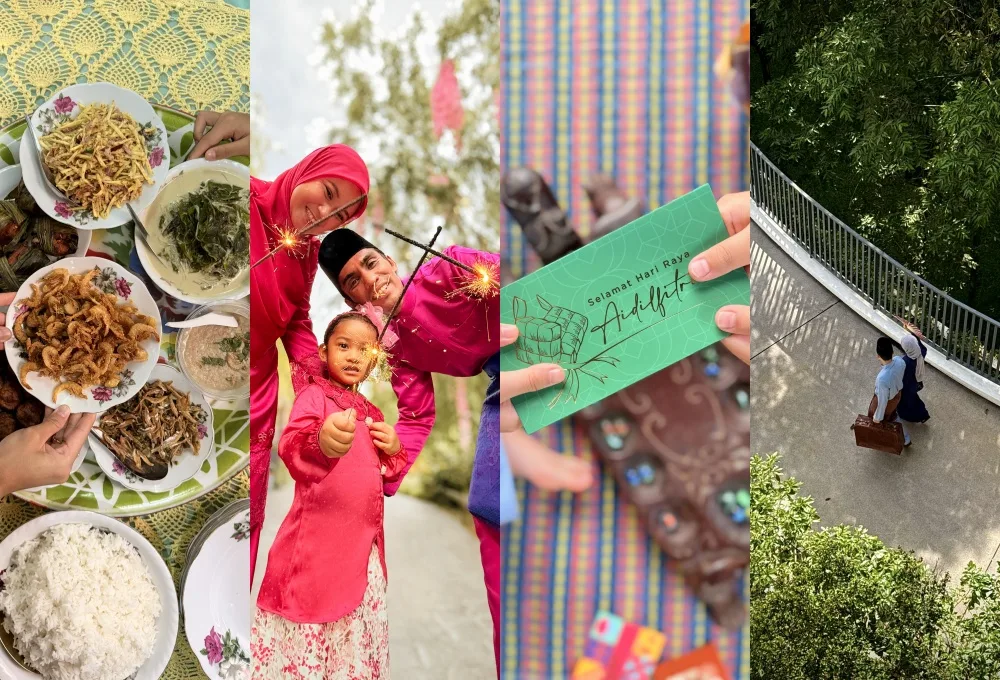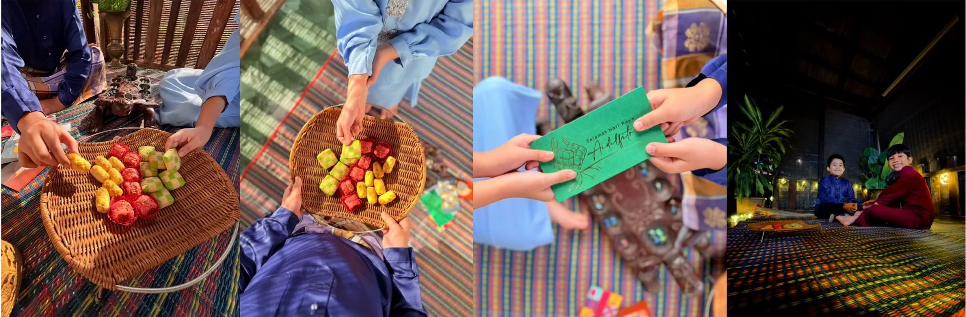 “Beraya with friends, reminiscing the golden days of 2004-2012 when visiting houses as kids. Raya was more than a celebration—it was the warmth of reunions, the scent of ketupat and rendang, and the laughter echoing through the streets. We roamed from house to house, welcomed with open arms, creating memories that still linger. From vending machines replacing neighbor’s kitchens to gathering on old wooden stairs, every moment felt cinematic. Nostalgia was in the kuih we shared and the promises to do this again, keeping the magic of Raya alive.” His tips include: