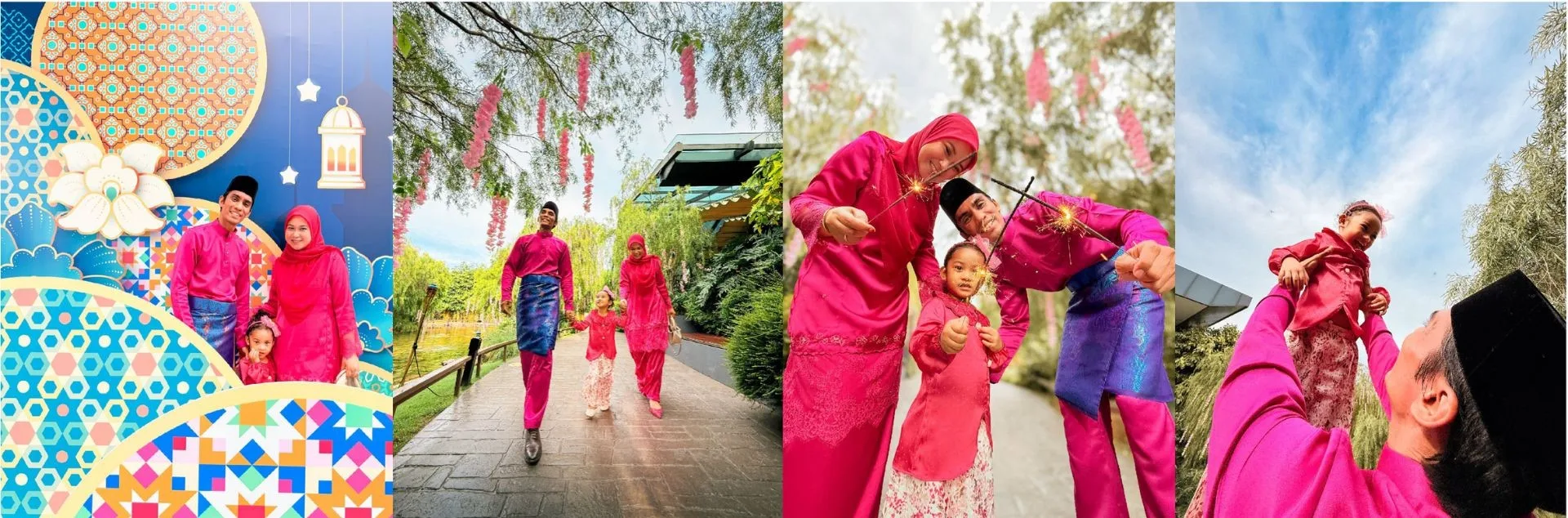 “Dressed in vibrant traditional attire, the family gathers on the first day of Raya, their smiles reflecting the joy of togetherness. Laughter fills the air as they embrace, capturing precious moments of love, tradition, and celebration.” His tips include: