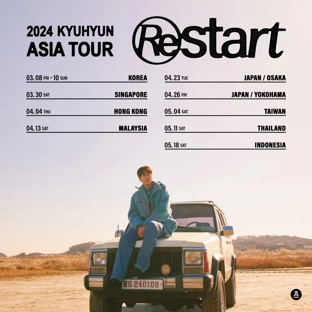 Earlier today (Monday, 15th January), Kyuhyun (규현) shared a poster announcing his “Restart” tour on Instagram. As seen in the post above, the Super Junior member will be touring around Southeast Asia and yes, Malaysia is included on the list! Not many details were revealed but according to the poster, here are the dates and countries announced:
