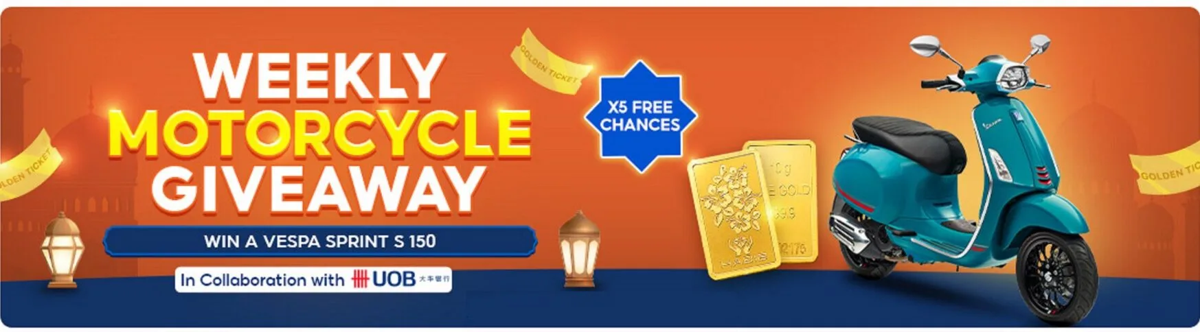 The more tickets you hold, the higher your chances are of winning yourself a new motorcycle for errands and transportation! Gold bars will also be given away as consolation prizes. So, don’t miss out the opportunity to accumulate additional golden tickets for a better chance of winning!
