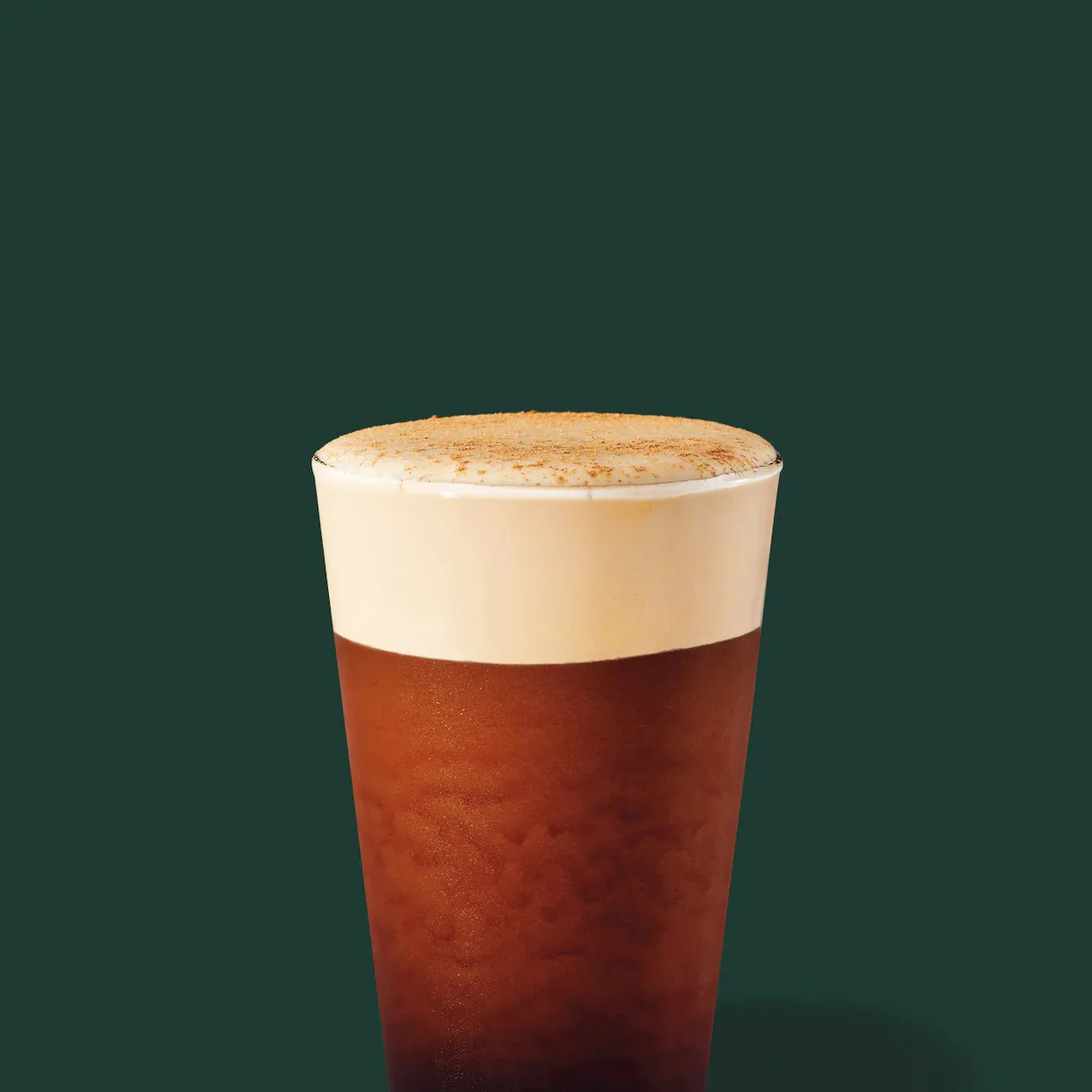 - Infused with cascading vanilla sweet cream and golden pumpkin spice sauce, topped with pumpkin cream cold foam