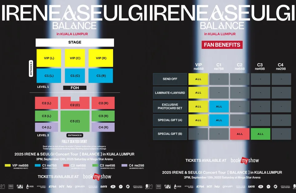 - Ticketing: RM888 (VIP), RM788 (CAT1), RM688 (CAT2), RM498 (CAT3), RM298 (CAT4)