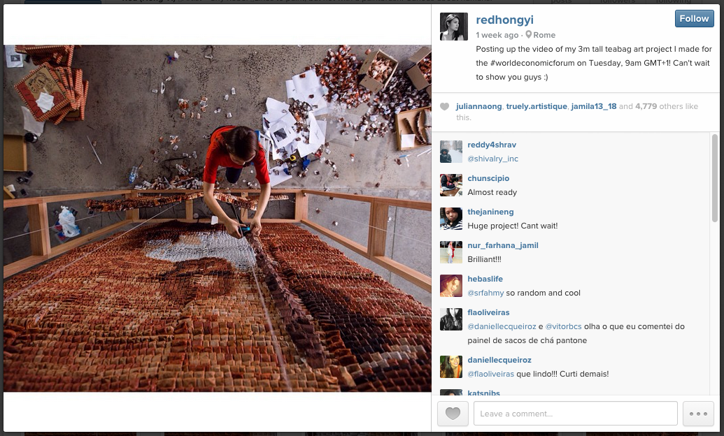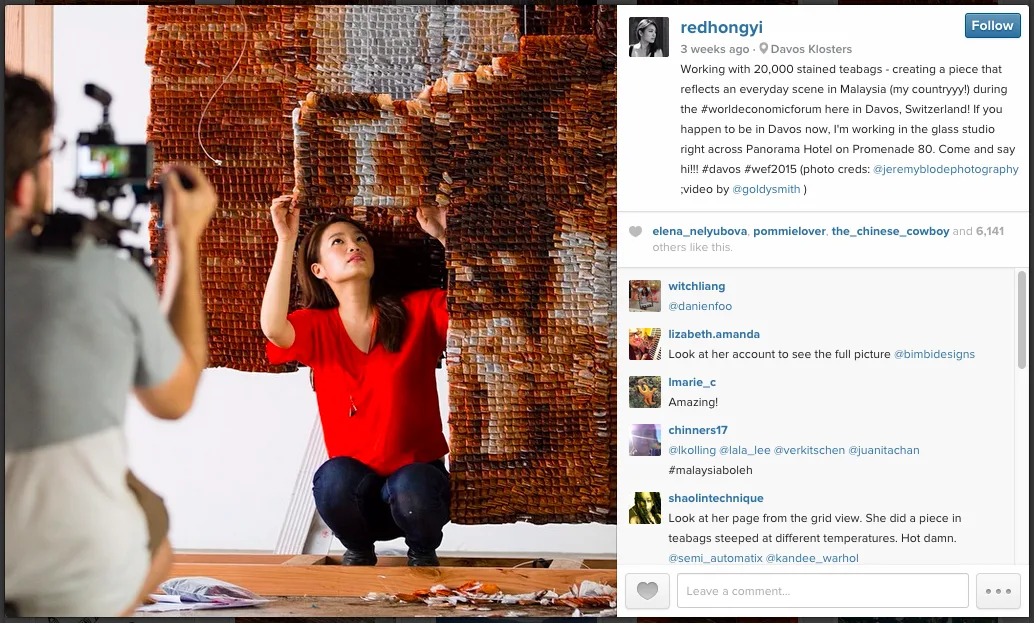 On 23rd January, in conjunction with the World Economic Forum in Davos, Switzerland, Malaysian artist Hong Yi aka Red Hong Yi created a work of art out of something that most Malaysians can easily relate to, to depict an everyday scene in Malaysia. It took her two whole months to make it, and a whole lot of work.