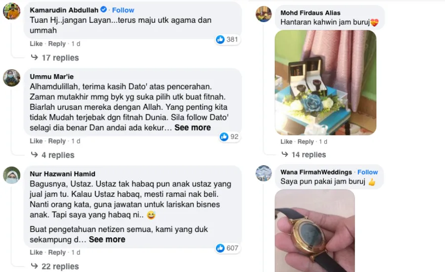In a post shared on his official social media accounts, the 58-year-old politician came forth to deny the false claim. Idris explained to Siti, “For your information. I’ve been using this Buruj-branded watch for a long time. It makes it easier for me to tell prayer times and also the kiblat direction.”
