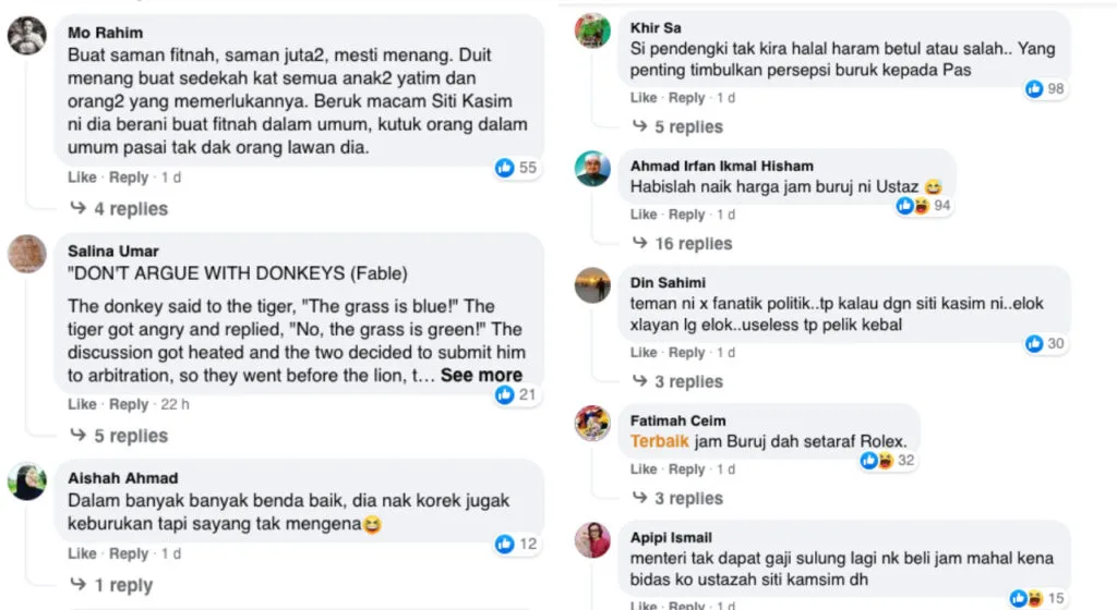 The social media update posted by Idris has in turn received a massive amount of attention from netizens. At the time of writing, the FB post has been shared over 3.9k times on social media. Scrolling through the comments, many of these social media users appeared to put Siti on blast for throwing a slanderous statement against Idris.