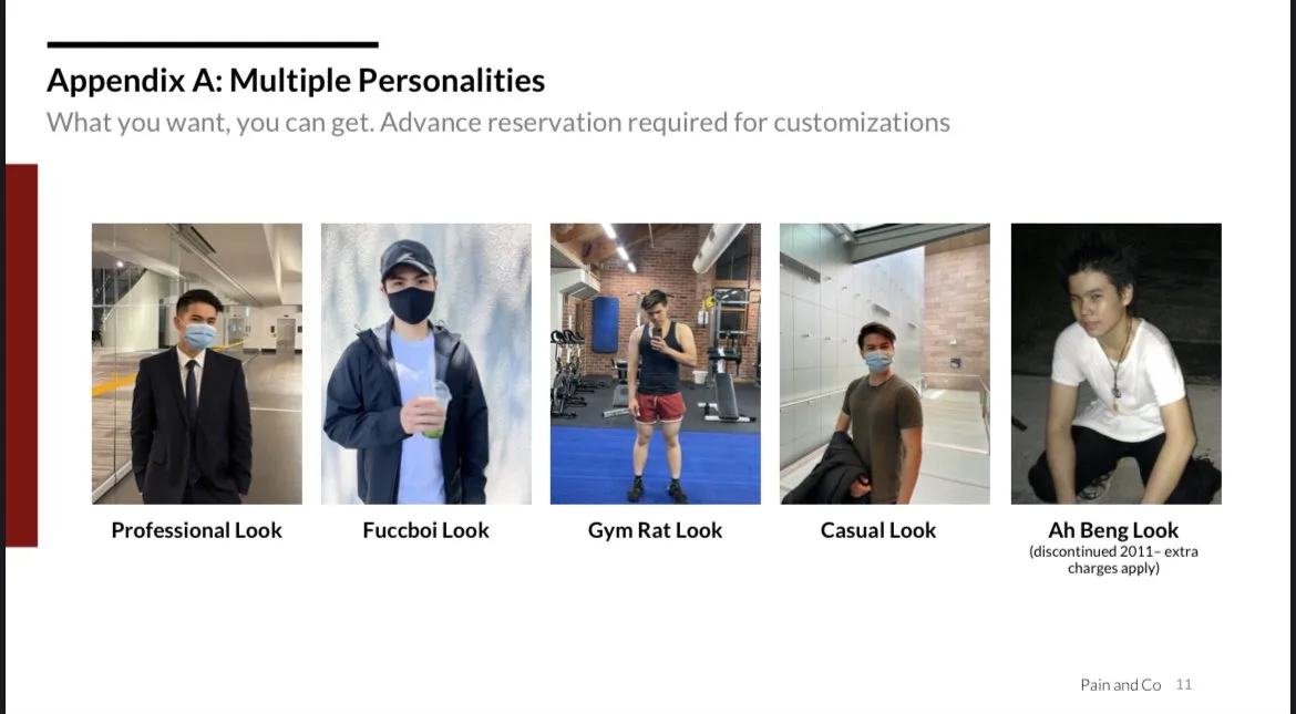 He also included the personalities you can choose from to bring back home: professional, f**kboi, gym rat, casual, and Ah Beng. Although, do take note that the Ah Beng look will cost you extra because it was discontinued back in 2011.